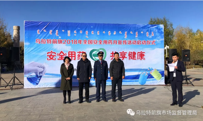 為了加強藥品安全宣傳工作, 提高全社會安全用藥水平,營造良好的藥品安全工作氛圍, 深入推進自治區(qū)文明城市等創(chuàng)建工作,10月26日上午, 烏拉特前旗市場監(jiān)督管理局在旗林海廣場舉辦了2018年 “全國安全用藥月”宣傳活動,拉開了為期一個月的宣傳活動序幕, 本次活動的主題為“安全用藥 共享健康”。政府副旗長布赫同志、 相關單位負責人及領導參加了本次宣傳活動。
